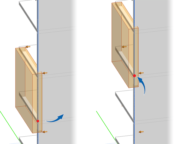 Um die gesamte Schnittbox zu drehen, selektieren Sie diese zunächst. Klicken Sie dann auf das Icon Drehen. Nach Bestimmen der Rotationsachse und des zu drehenden Punkts, können Sie die Schnittbox in die gewünschte Position drehen.