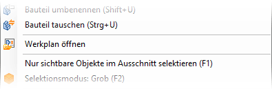 Selektieren Sie zusätzlich ein 3D-Objekt, welches kein Bauteil ist, werden diese Optionen nicht angezeigt.