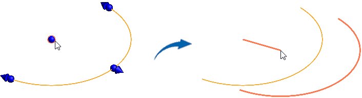 Über den Mittelpunkt des Bogens (kugelförmiger Griffpunkt) können Sie die Lage des Bogens ändern.