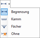 Markierungstyp Umschalticon ![]() Markierungtyp wählen Begrenzung Kamm Fächer ![]() Ohne Nur Positionssymbol ohne Markierung darstellen |