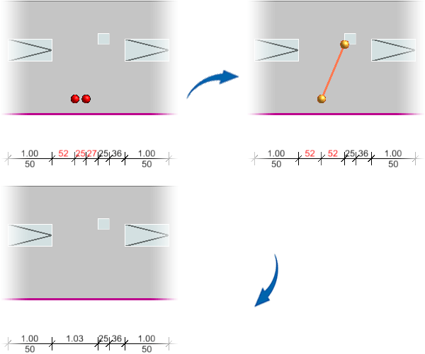 Maße ohne Anbindung löschen Die nicht angebundenen Maße werden gelöscht und die Maßketten automatisch korrigiert. ![]() | |