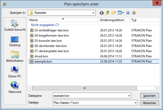 Nach Bestätigen mit OK speichern Sie den Plan über den Windows-Dialog unter einem neuen Namen und/oder in einem anderen Pfad.