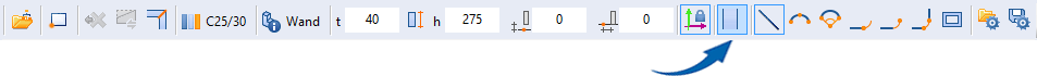 Entsprechend dem gewählten Wandtyp stehen in der Zusatzleiste weitere Icons zur Verfügung: