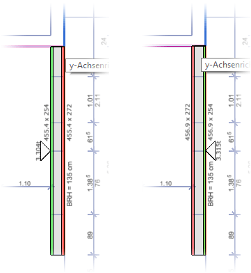 Sie können auch Griffpunkte an der Ober- und Unterkante hinzufügen, um an diesen einen Absatz einzufügen. Bei der Doppelwand und der Isowand kann dies für beide Schalen erfolgen. Bei der Isowand gilt dies unabhängig von den Schalen auch für die Dämmung und die 3. Bewehrungslage.