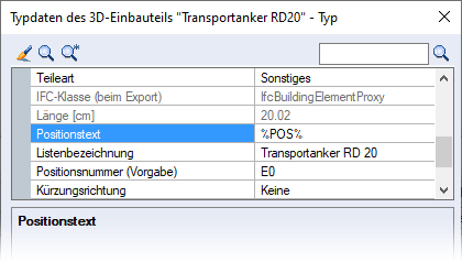 über den Positionstext nutzen. Positionstext und Inhalt der Variable ergeben dann die Beschriftung des Einbauteils.