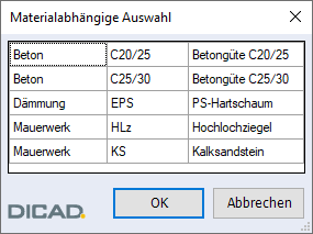 Sind vor der Selektion Objekte markiert, werden die zugehörigen Materialien in der Liste markiert. |