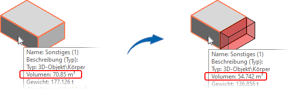 Das bestehende Objekt wird um das Abzugsobjekt bzw. Verdrängungsobjekt verkleinert: