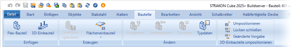 Im Modus Cube Bauteil werden die Funktionen der Registerkarte Ändern erst aktiv, wenn ein Flex-Bauteil / 3D-Einbauteil selektiert ist.