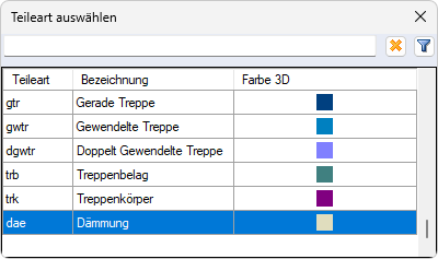 Bestimmen Sie das Material sowie die Teileart, z.B. Dämmung, für das Flächeneinbauteil: